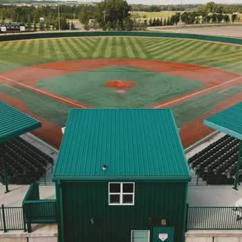 Tourmaline Field was designed to maximize development opportunities for the Dawgs Academy. As such, a field turf infield was included as part of the design in order to enable Dawgs players to begin outdoor training as early in the year as possible. Tourmaline includes many of the first class features of Seaman Stadium such as wood outfield fencing with a shale warning track, full sized, cement dugouts and an outdoor training center complete with batting cages and pitching mounds. In addition to comfortable stadium seating, fans enjoy a concourse viewing and seating area overlooking the field of play surrounding the Peters & Co. Press Box. Like Seaman Stadium, Tourmaline features Musco field lights for night play and a full sized digital Scoreboard and Public Address system. In partnership with the Town of Okotoks, the Dawgs added an extensive Dawgs Academy Clubhouse, an Umpire’s change room and full service washrooms, to make Tourmaline Field one of the premier amateur baseball stadiums in the country.